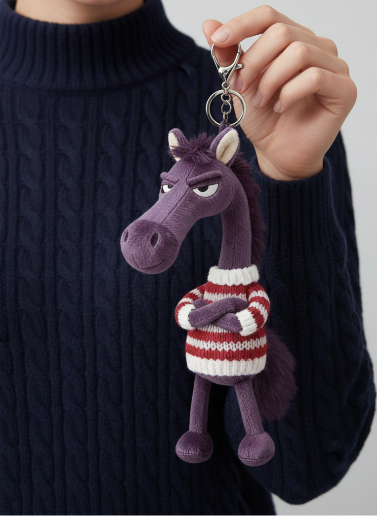 Fedezd fel a „Merész ló” kulcstartót, a tökéletes kiegészítőt mindenkinek, aki értékeli a humort és az egyediséget. Ikonikus „morcos” kifejezésével és stilizált dizájnjával ez a plüssállat bármely táskát vagy kulcscsomót figyelemfelkeltővé varázsolja.